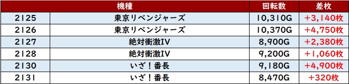 続いて「東京リベンジャーズ~いざ番 2125~2131」が3機種を跨いで絶好調!