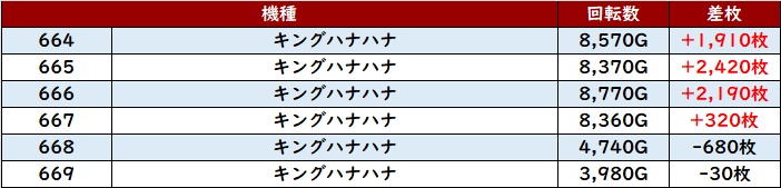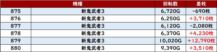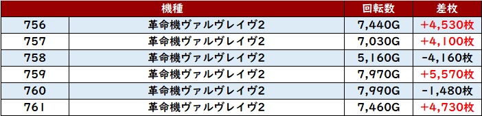 差枚数+7,150枚を先頭に軒並み目を見張る出玉感を叩き出し、更に全台回転数8,000G超えとなっていた!