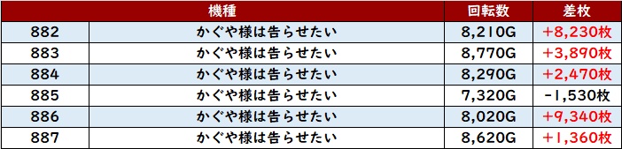 更に「かぐや様 882~887」も凄まじい数値で、盛り上がりに大きく貢献!