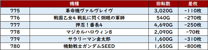・1台あたりの平均差枚数:+1,120枚