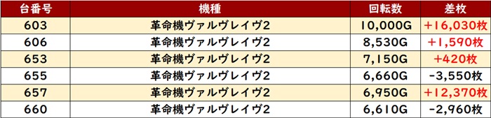 続いて「ヴヴヴ2」のピックアップ台の中から2台が差枚数+1.2万枚超えを記録!