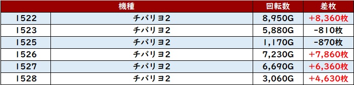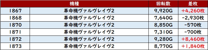 更に稼働についても全台回転数1万G超えとぶん回されており、優秀な状況であることがしっかり感じ取れた!