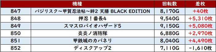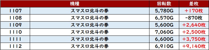 半数が回転数9,000G超え且つ差枚数+2,700枚超え、更に差枚数+7,050枚とAT/ART機を凌駕する結果を残す台まで現れ、ユーザーの度肝を抜いた。