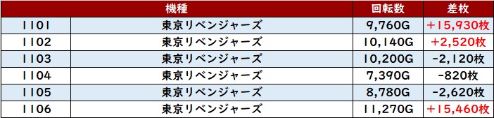 出玉面でも6台中5台が大幅プラス差枚、中には差枚数+15,410枚と驚異的な数値を記録する台も見受けられ、注目を浴びていた!