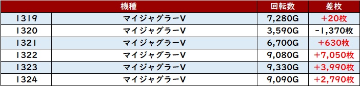 続いて「マイジャグ5 1319~1324」が大盛り上がり!
