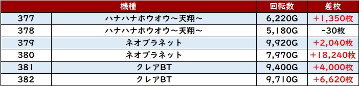 更に6台中5台が差枚数+4,200枚超えと良い意味でAタイプらしからぬ出玉感を叩き出しており、多くのユーザーが羨望の眼差しを向けていた!