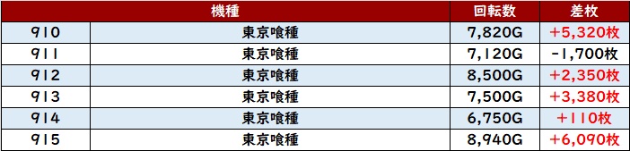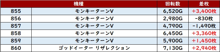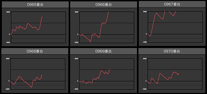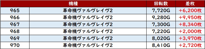 まずは「ヴヴヴ2 965~970」が全台差枚数+2,000枚以上の素晴らしい結果に!