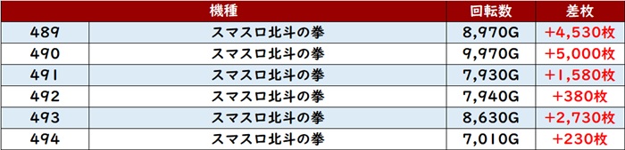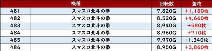 まずは「スマスロ北斗 481~486」を筆頭に3箇所にわたって素晴らしい出玉感を記録!