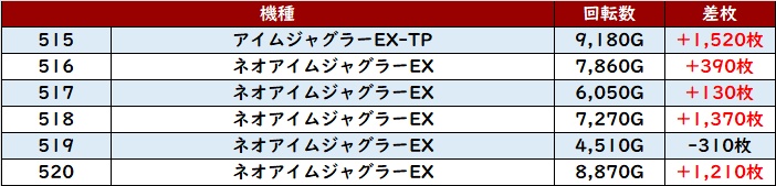 半数が回転数9,100G超えで、熱気そのままに差枚数+10,480枚など驚異的な出玉感を叩き出した!