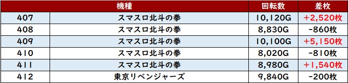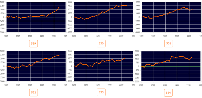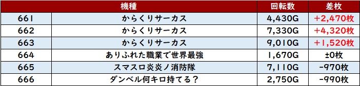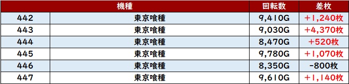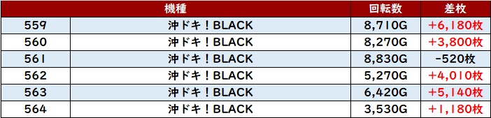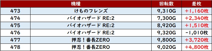 半数以上が回転数9,000G超えに加えて6台中5台が大幅プラス差枚と充実度の高い結果へ導いていた!