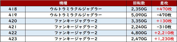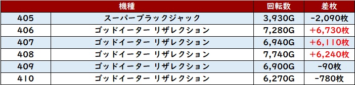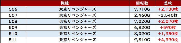 続いて「東京リベンジャーズ 506~511」が6台中5台がプラス差枚と抜群の結果を残す!
