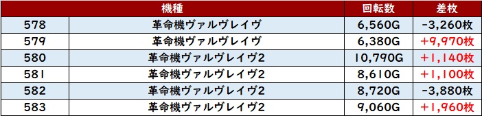 まずは「ヴヴヴ~ヴヴヴ2 578~583」が機種跨ぎで好調に!