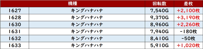 中には差枚数+1万枚超えの台まで見られ、終始盛り上がりを見せていた。