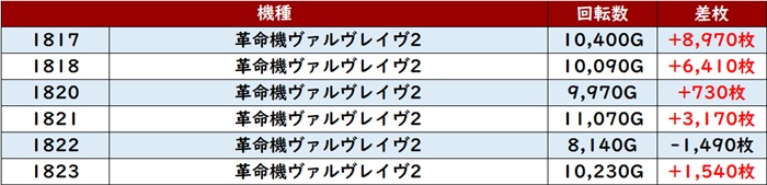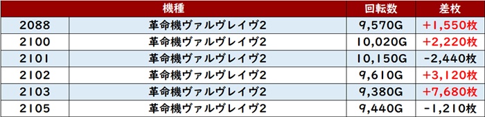 まずは「ヴヴヴ2 1817~1823、2088~2105」がどちらも回転数1万G超えが見られる程の高稼働に!