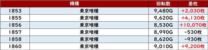 また「東京喰種 1853~1860」も全台回転数8,500G超えと凄まじい勢いに!