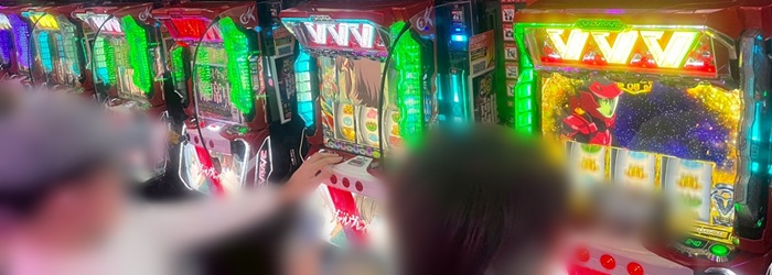 朝イチは「ヴヴヴ2」「東京喰種」「からくりサーカス」「ヴヴヴ」「東京リベンジャーズ」の順に満台となり、その後「とある超電磁砲2」「新鬼武者3」「いざ番」「モンハンライズ」などのスマスロ人気機種もフル稼働となった。