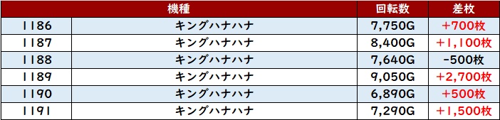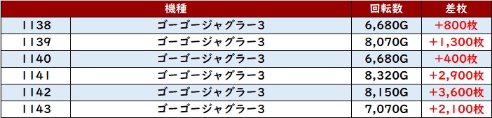 半数以上が回転数7,800G超え&差枚数+4,100枚以上を叩き出し、店内の出玉感に大きく貢献した。