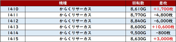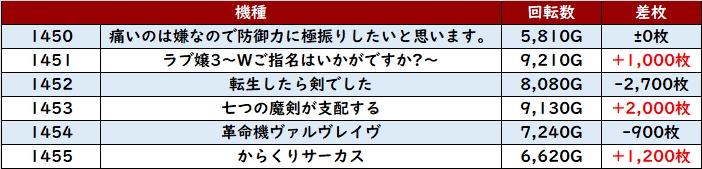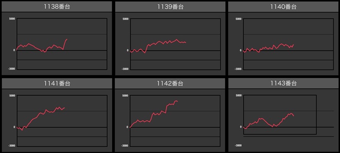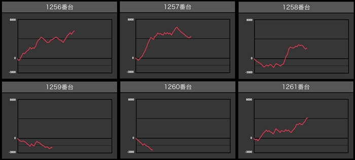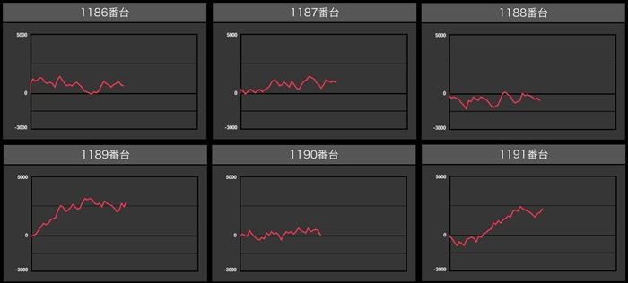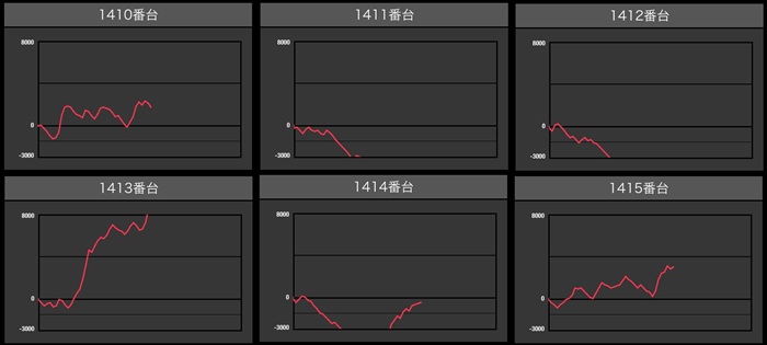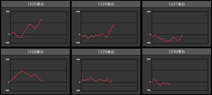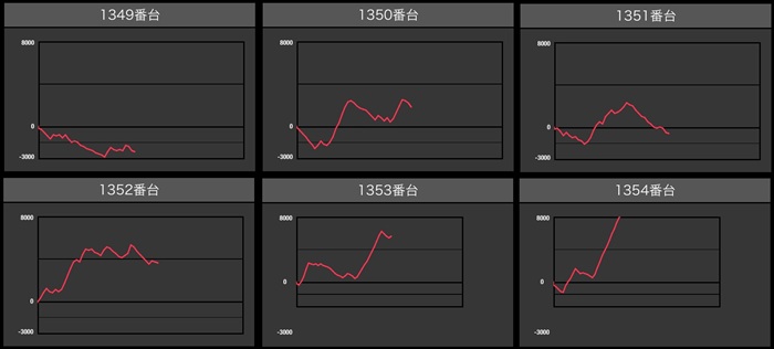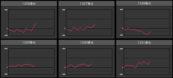 まずは「東京喰種 1349~1354」が6台中4台が差枚数+2,400枚以上の大幅プラス差枚に!