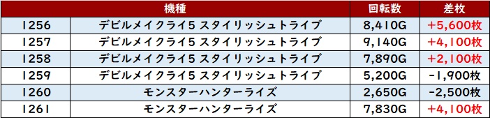 続いて「DMC5ST~モンハンライズ 1256~1261」が機種跨ぎで好調さをアピール!