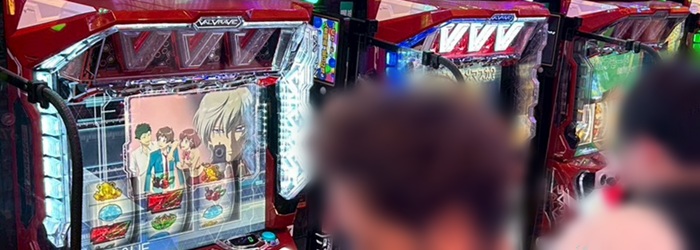 朝イチは「ヴヴヴ」「東京喰種」「スマスロゴッドイーター」「新鬼武者3」「絶対衝撃4」の順で埋まった。