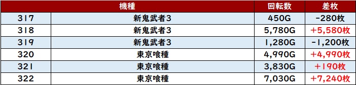 続いて「新鬼武者3~東京喰種 317~322」も素晴らしい出玉感に!