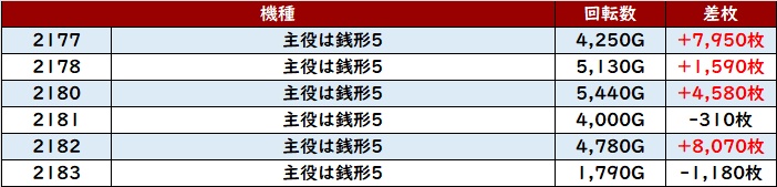 まずは「銭形5 2177~2183」が持ち前のポテンシャルを存分に発揮!