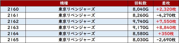 まずは「東京喰種 2119~2124」全台回転数9,000G超え且つ差枚数+3,100枚超えと、誰もが目を惹くような数値を記録!
