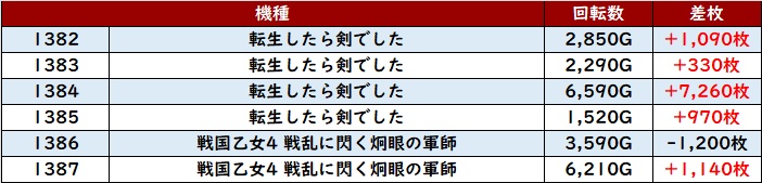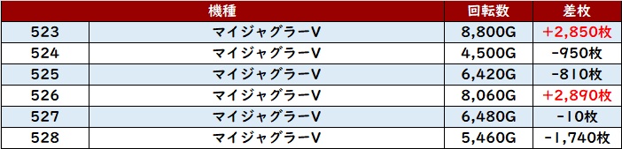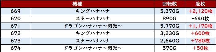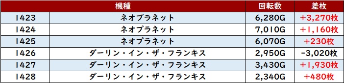 6台中5台がプラス差枚と高い勝率を叩き出し、盛り上がりに大きく貢献していた。