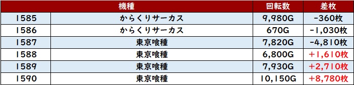 まずは「からくりサーカス~東京喰種 1585~1590」の殆どが長時間ぶん回させる結果に!