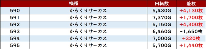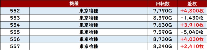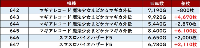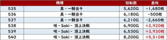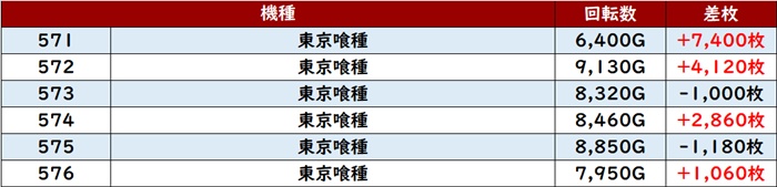 大半が大幅プラス差枚に加え殆どが回転数7,500G超えの高稼働を記録しており、店内でも一際大きな熱気を感じる箇所となっていた!