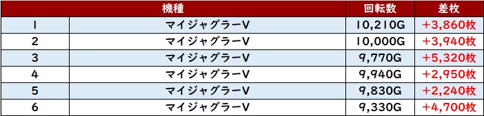 こちらも稼働状況が良好で、差枚数+10,320枚を筆頭に大きな出玉感で盛り上がりに貢献した。