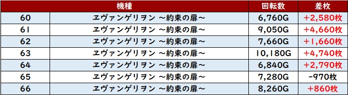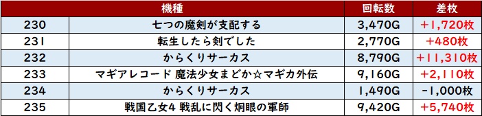 18台あるピックアップの中で殆どが回転数8,100G超えとなっており、差枚数+4,560枚など出玉感でも絶好調となった!