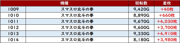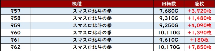 まずは「スマスロ北斗」が4箇所、計24台全台プラス差枚と快挙を達席!