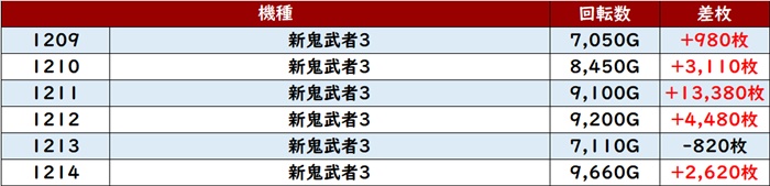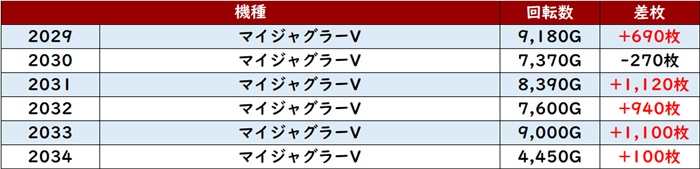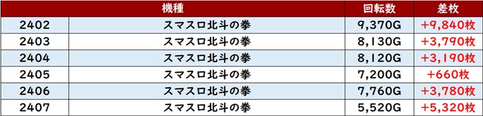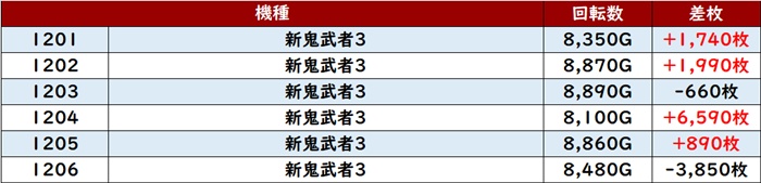 こちらも台の持つポテンシャルがしっかり引き出されており、差枚数+1万枚超えを複数台確認することができた!