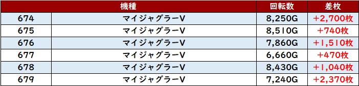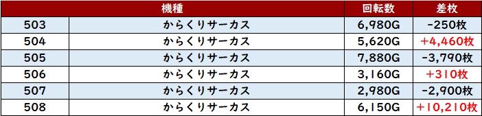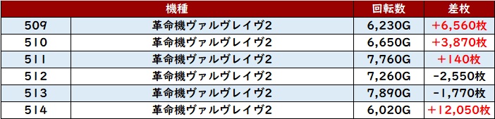 回転数8,100G超えの稼働も相まって、差枚数+6,300枚超えの出玉感を複数送り出していた。