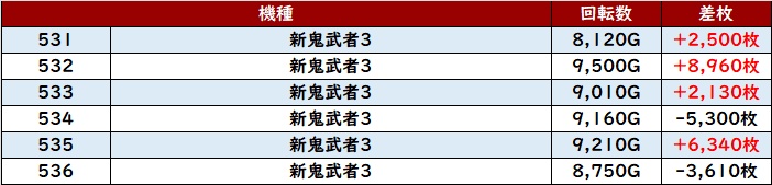 更に「新鬼武者3 531~536」も素晴らしい出玉感で盛り上がりに貢献!
