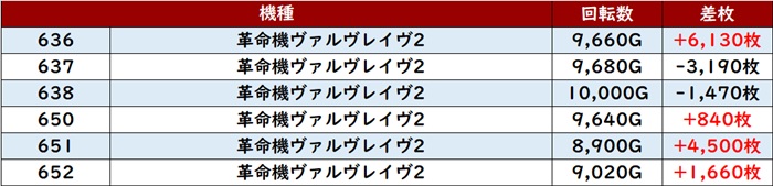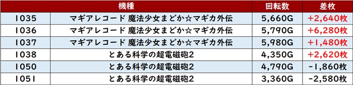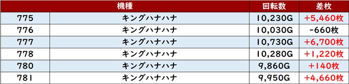 回転数1万G超えとなった台が大半で、差枚数+6,700枚を筆頭にAタイプらしからぬ出玉感を目撃できた!