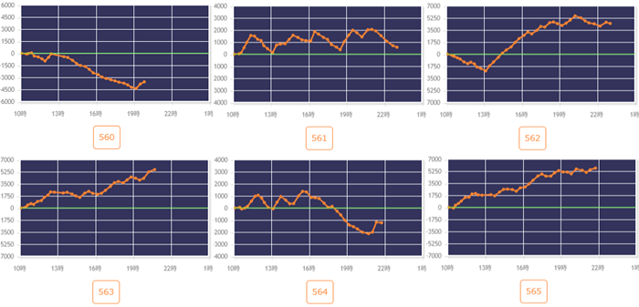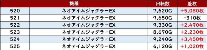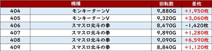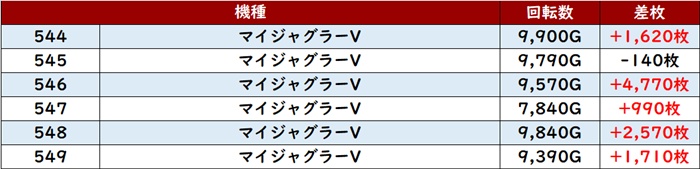 差枚数+9,380枚を筆頭に、大半が差枚数+3,500枚超えと申し分ない出玉感を記録し、盛り上がりの立役者となった!