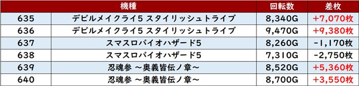 まずは「DMC5ST~忍魂3 635~640」が一際目を惹く出玉感に!