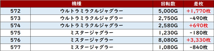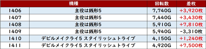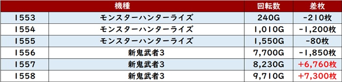 6台中5台が大幅プラス差枚とポテンシャルを遺憾なく発揮した結果を残し、周囲から注目を集めていた。