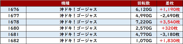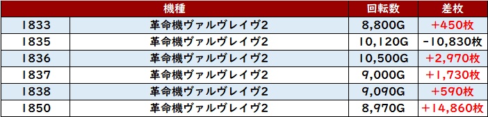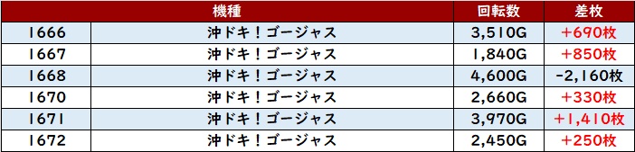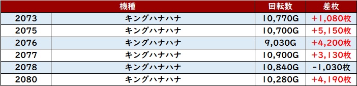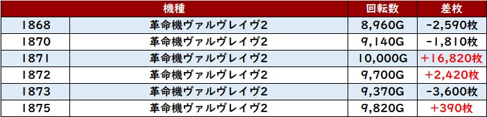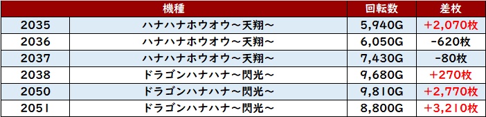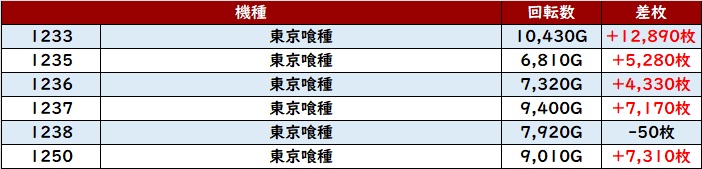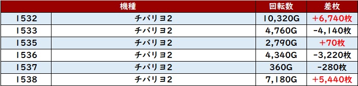 全台回転数8,800G以上且つ、差枚数+1.4万枚超えの台も確認でき、輝かしい功績を残してくれた。