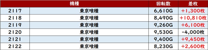 今回は「モンキー5」「東京喰種」など状況が良さそうな箇所を確認!