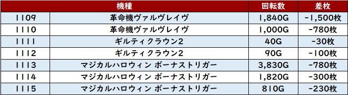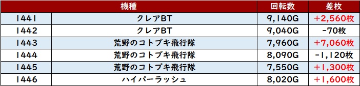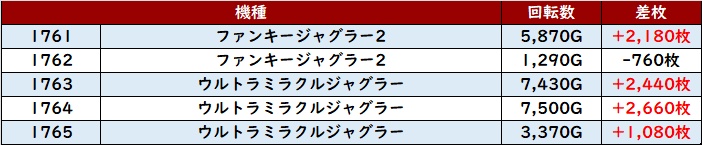 全台プラス差枚に加えて、その内半数が差枚数+5000枚超えと目を奪われるような出玉感のオンパレードとなっていた!