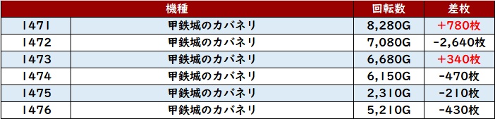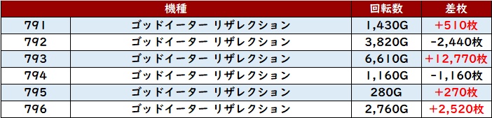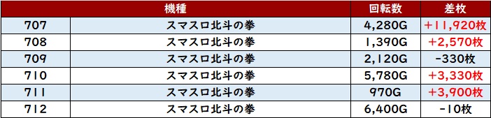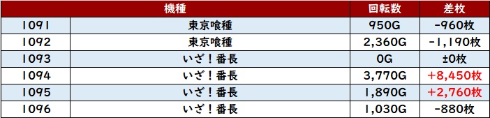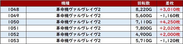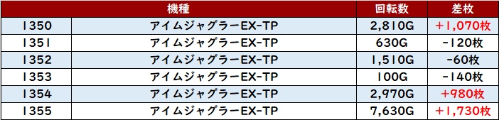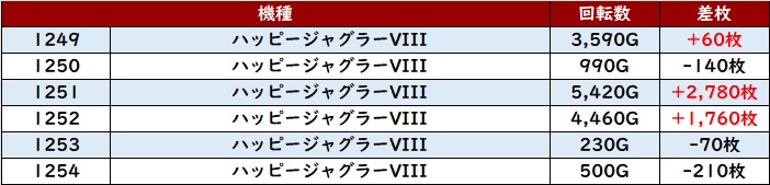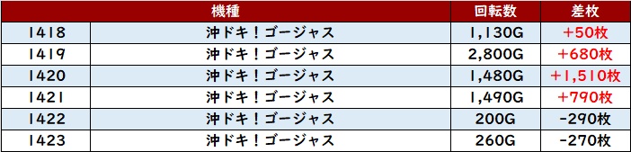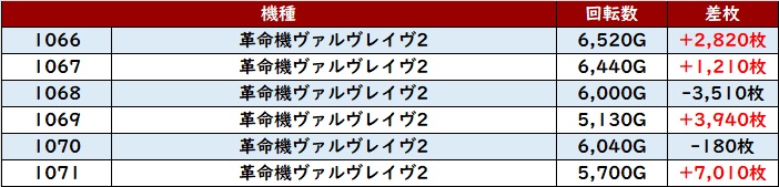 6台中4台が大幅プラス差枚となり、中には差枚数+1.1万枚超えの台も確認でき、周りからの注目を集めていた!