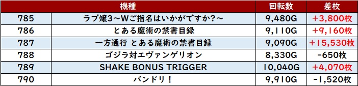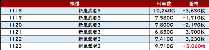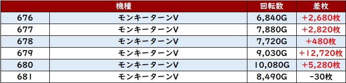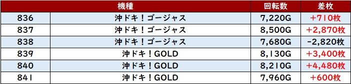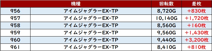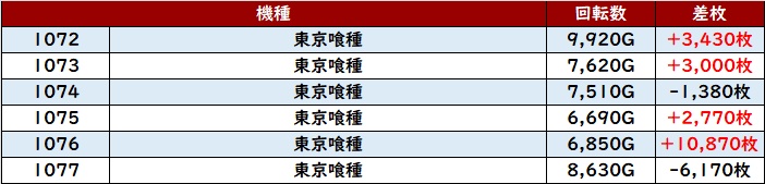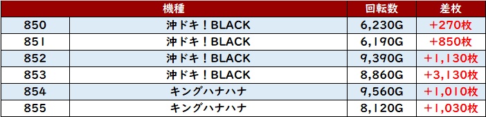 6台中5台が大幅プラス差枚を記録し、中には差枚数+1.1万枚超えの台も確認でき、衝撃的な出玉感を周囲に見せつけていた!
