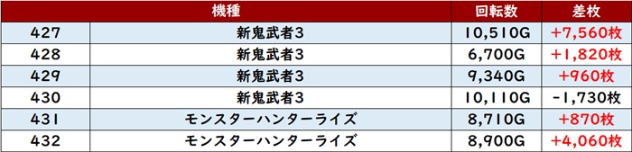 【11月8日 エクス・アリーナ 柏店】スロパチ来店取材!新鬼武者3から差枚数+1万枚超えを複数目撃!タイプ問わずピックアップ箇所が驚愕の稼働状況となっていた!