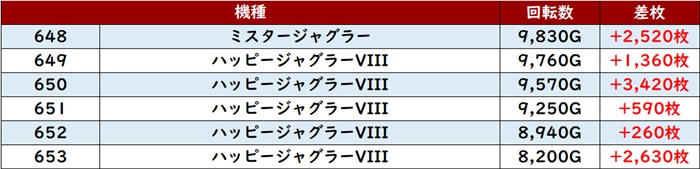 差枚数+7,200枚超えのオンパレードとなっており、中には差枚数+18,470枚とコンプリート機能に手が届いたと思われる台まで現れた!
