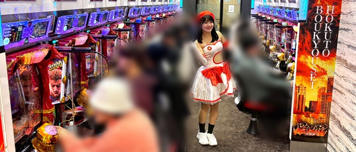 【11月8日 ピーアーク相模大野店】すろぱちガール来店P!北斗暴凶星が総差玉数+12.1万玉と突出した出玉感で注目の的に!3列とも多くのユーザー達が粘っていた!