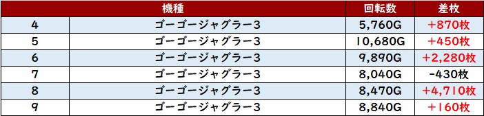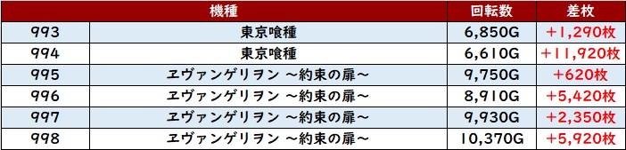 大半が差枚数+3,800枚以上、中には差枚数+13,310枚と目を見張る出玉感を叩き出す台も現れ、ユーザー達の凄まじい熱量がこちらにも伝わってきた!