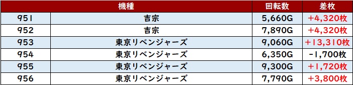 まずは「スマスロ吉宗~東京リベンジャーズ 951~956」が注目度の高い箇所に!
